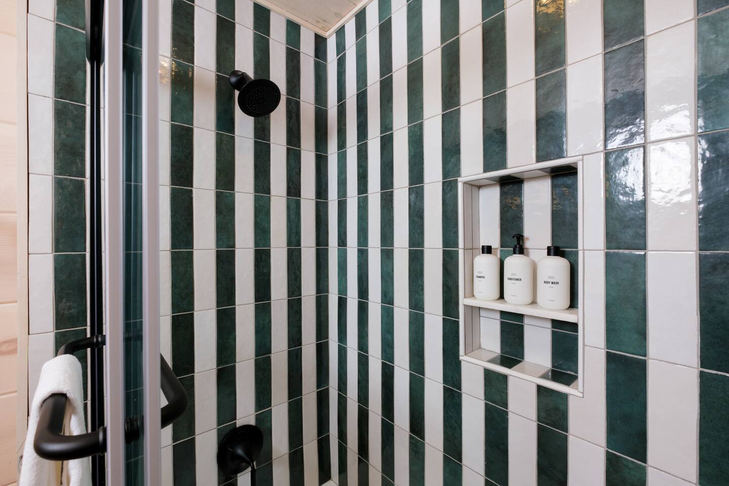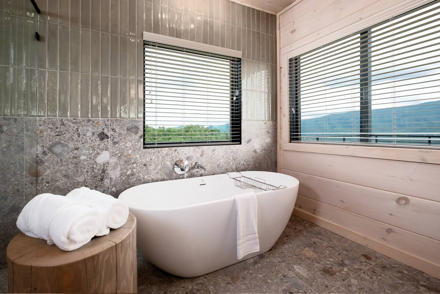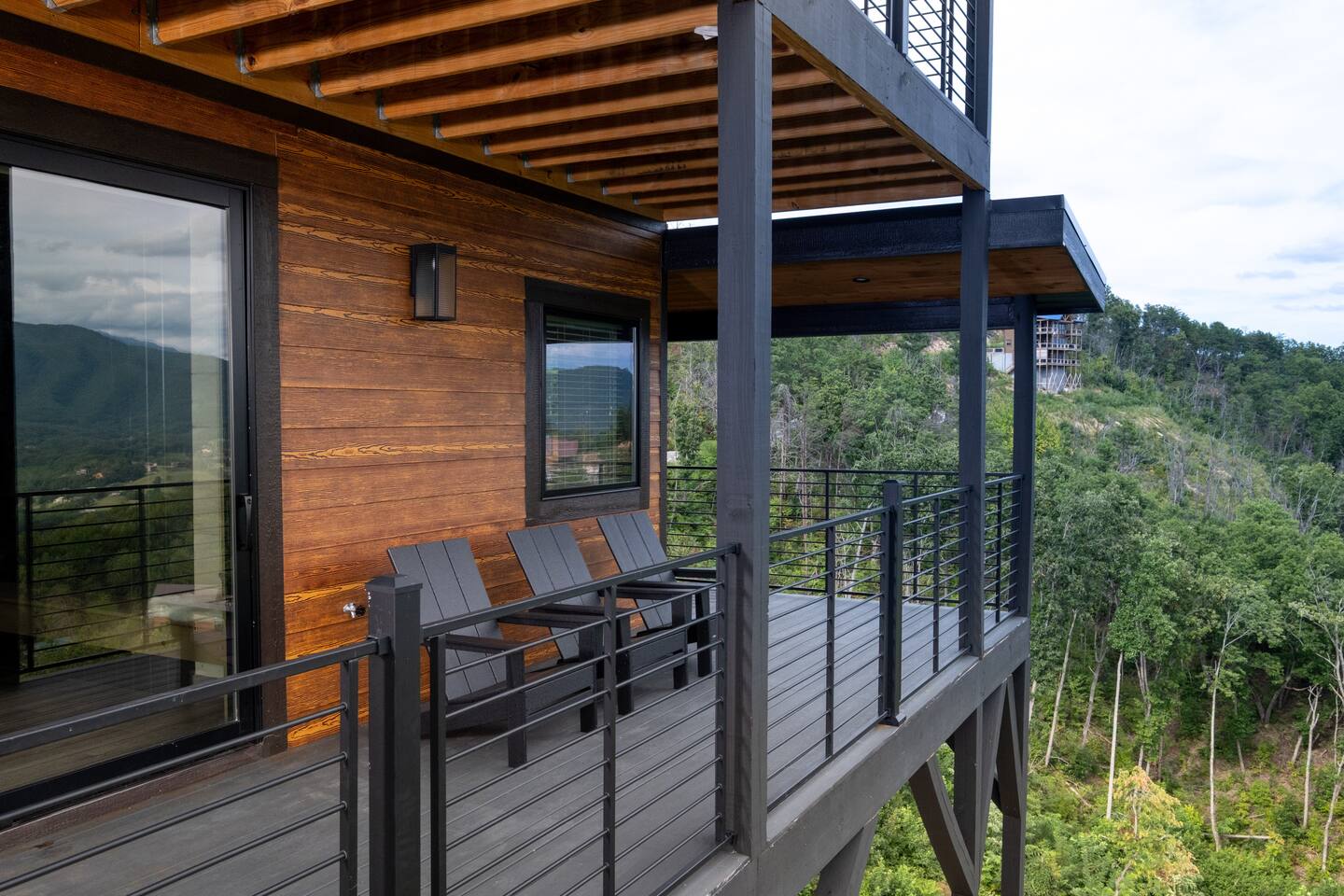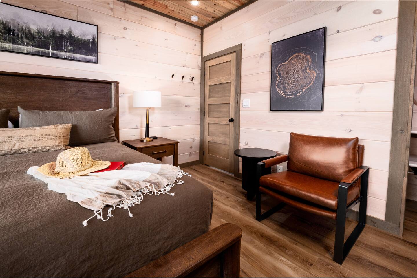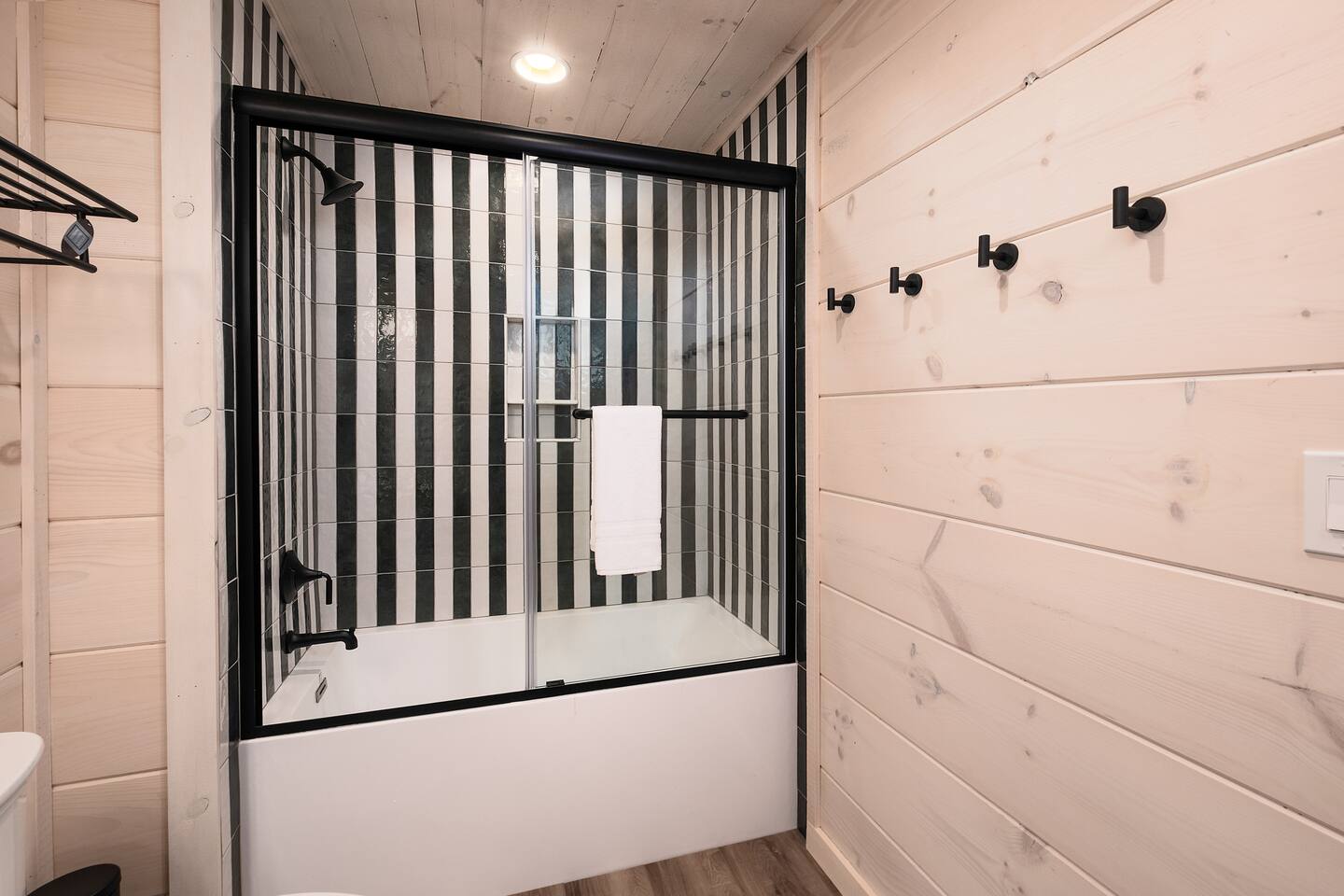 ★ 5 King Suites – Each with fireplace, spa bath (soaking tub & shower), and luxury linens ★ Bunk Room – Sleeps up to 10 kids/teens, with ensuite bath ★ 8.5 Bathrooms – No waiting for showers ★ Private Indoor Pool – One of the largest in the Smokies; lazy river, waterfall, built-in spa, kiddie pool (heated year-round, secured with coded lock & door alarm) ★ Year-Round Outdoor Swim Spa/Hot Tub – Relaxation, hydrotherapy, or resistance workouts ★ Sports Court – Regulation pickleball court (shared with basketball) & 6-hole putt-putt; court lit for night play ★ Game Loft + Media Tower – Pool table, arcade games, air hockey, big screens ★ Chef’s Kitchen – Dual appliances, oversized island, 12-seat dining table, bar seating ★ Multiple Fireplaces – 5 bedrooms + living & media rooms ★ Expansive Decks – Dining, lounge, & firepit seating with panoramic views ★ Covered Outdoor Grill Station – 12-burner gas grill, griddle, lounge area ★ Family-Friendly – High chair, pack ’n play, board games, bunk room designed for kids/teens ★ Designer-Appointed Interiors – High-end finishes and luxury linens ★ EV Charger – On-site for your convenience SLEEPING ARRANGEMENTS Main Level (No-step entry, mobility-friendly) ▪ Bedroom 1: King bed, fireplace, spa bath, deck access ▪ Bedroom 2: King bed, fireplace, spa bath ▪ Bedroom 3: King bed, fireplace, spa bath Upstairs ▪ Bedroom 4: 4 full bunks, full sofa bed, en suite bath ▪ Bedroom 5: King bed, fireplace, spa bath, private balcony ▪ Bedroom 6: King bed, fireplace, spa bath Additional Sleeping ▪ Loft: Queen sofa bed, full bath ▪ Media Tower: Queen sofa bed, private deck, full bath access ▪ Pack ’n play