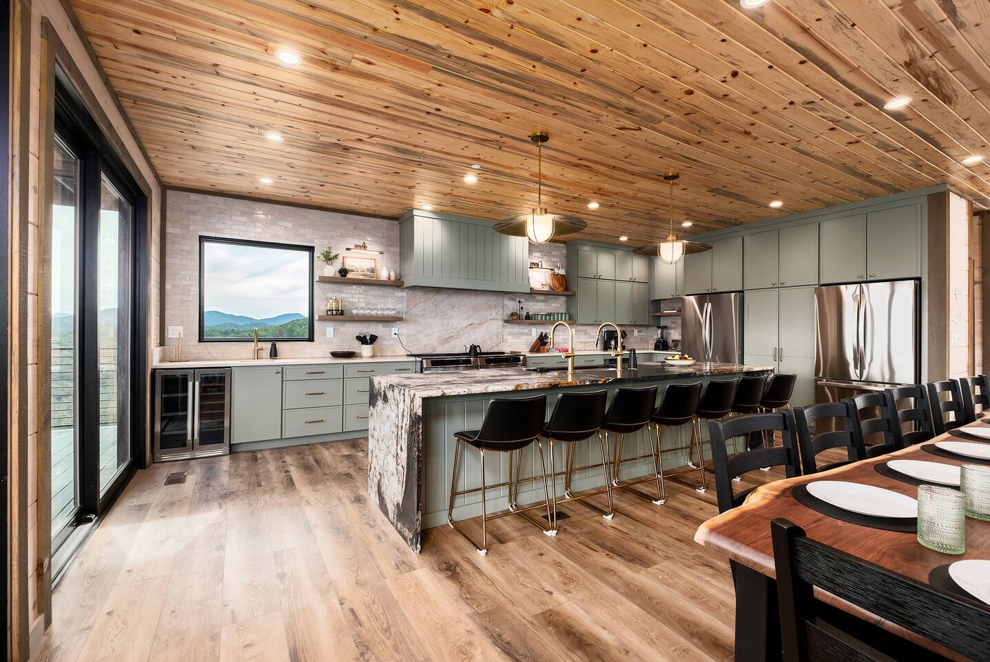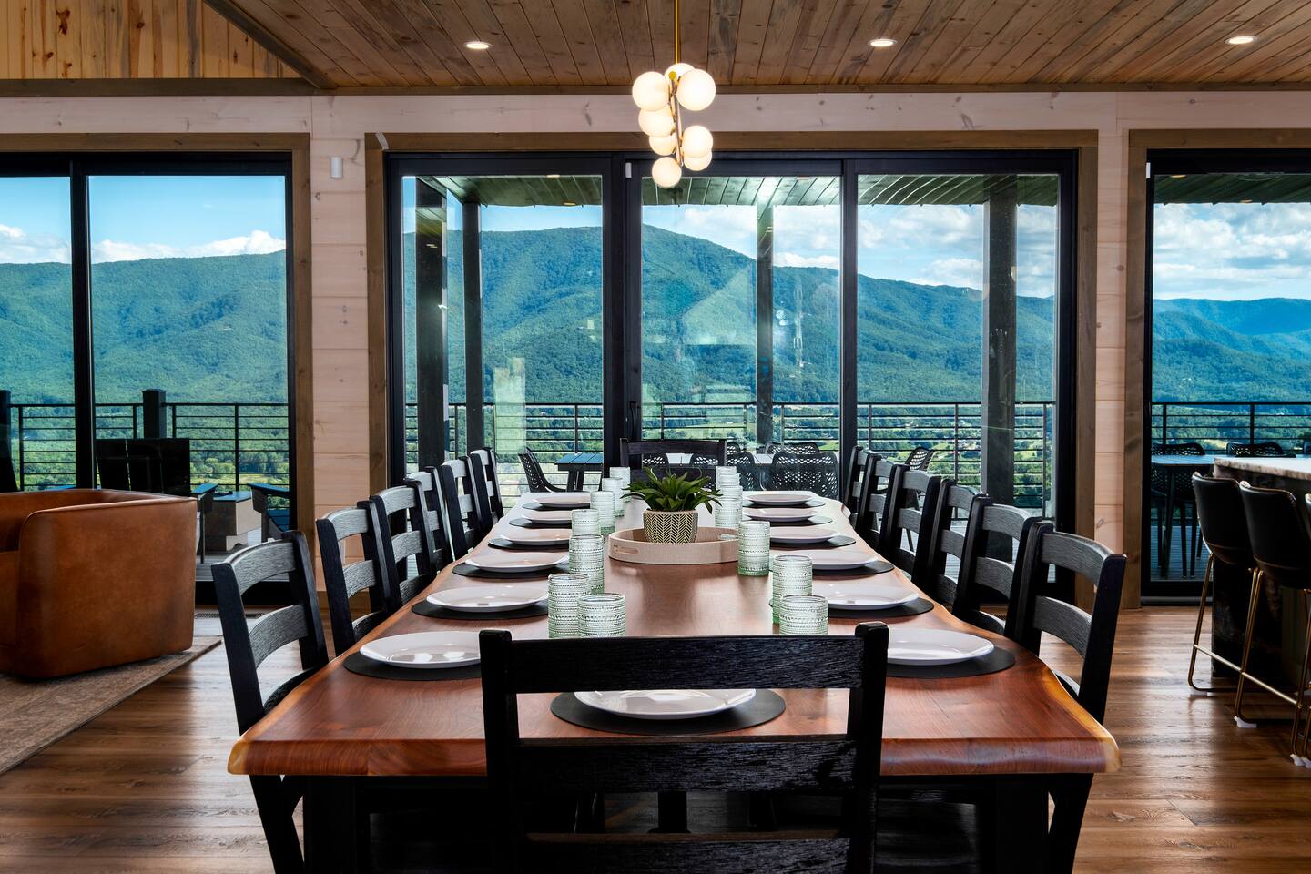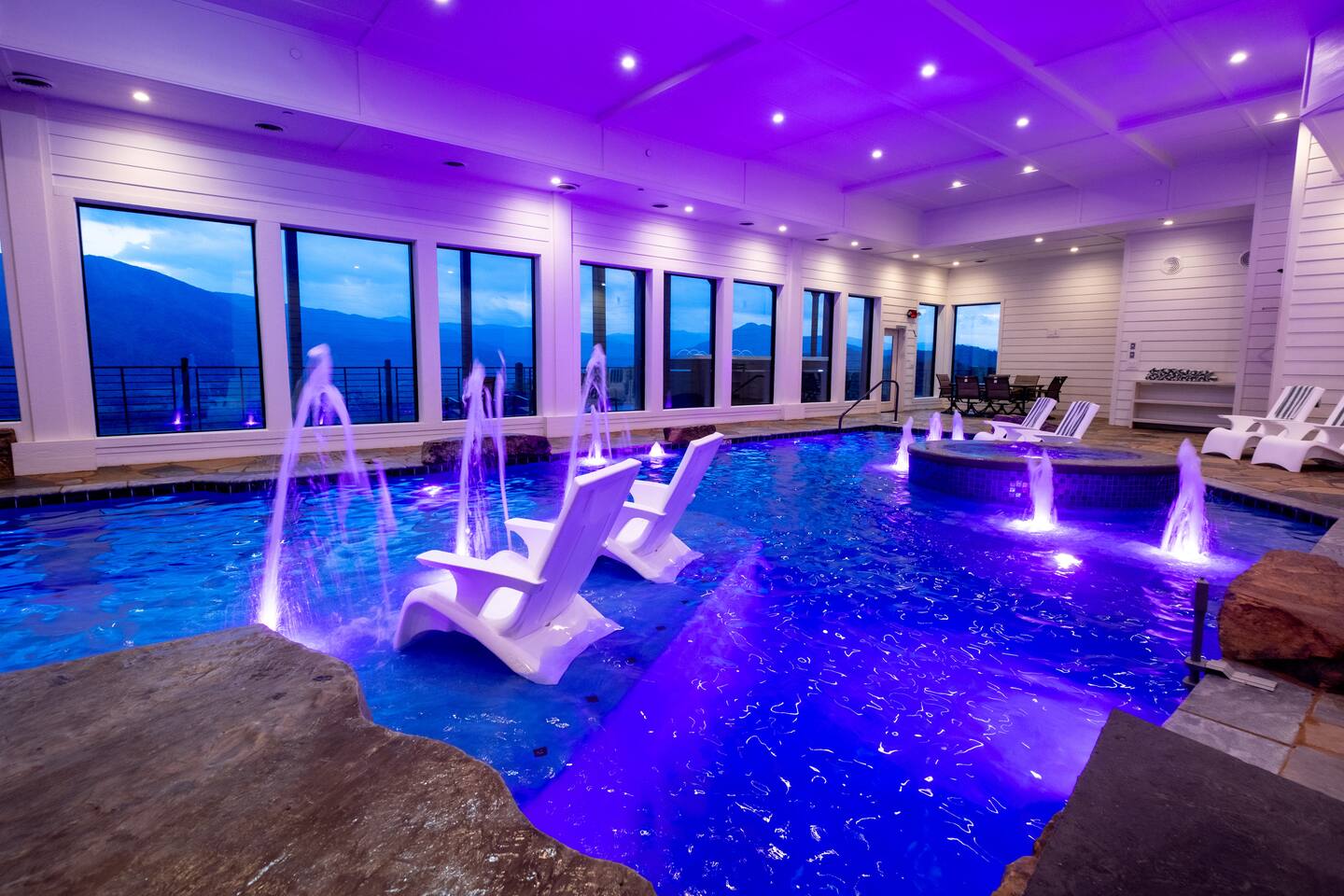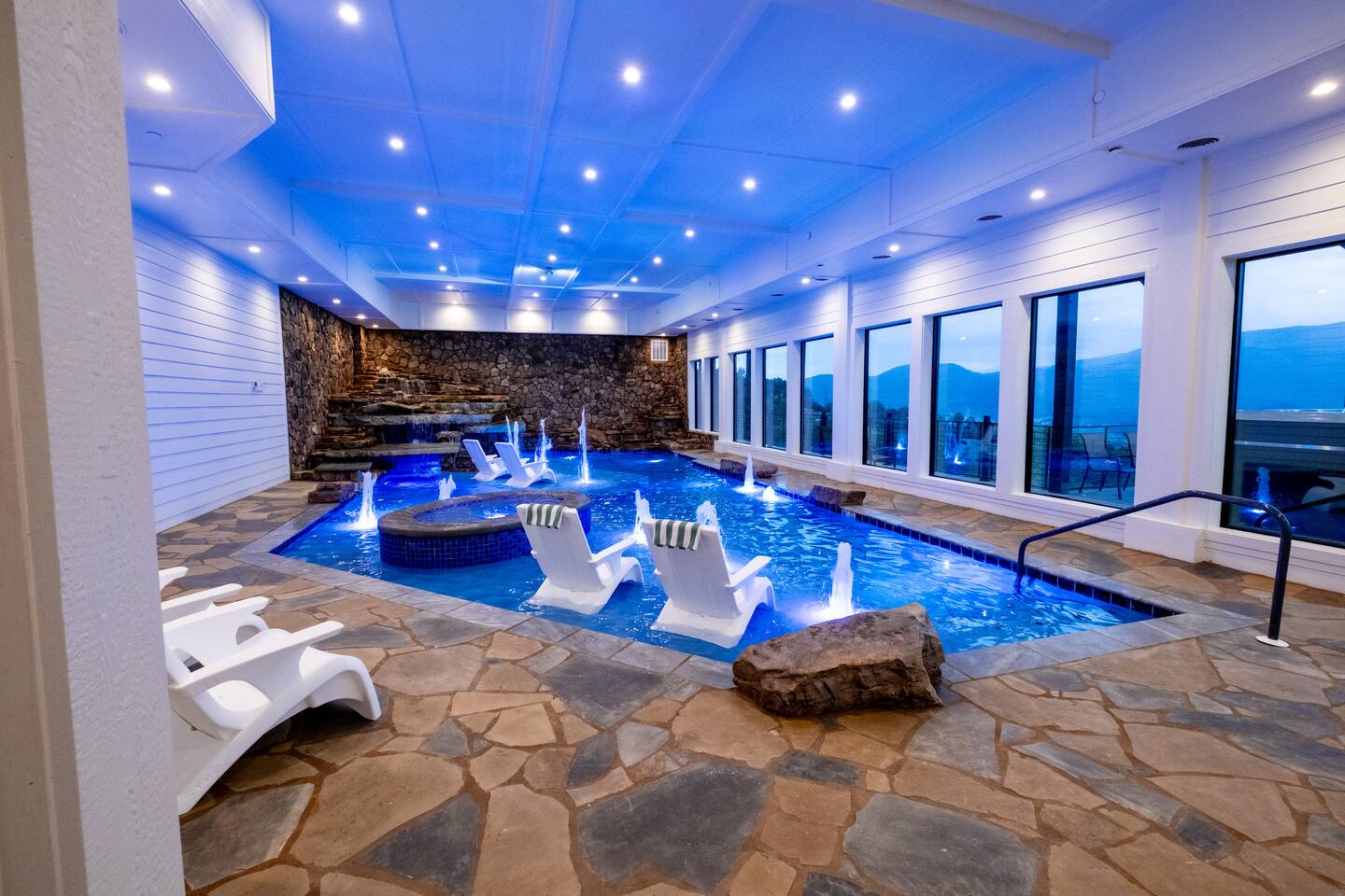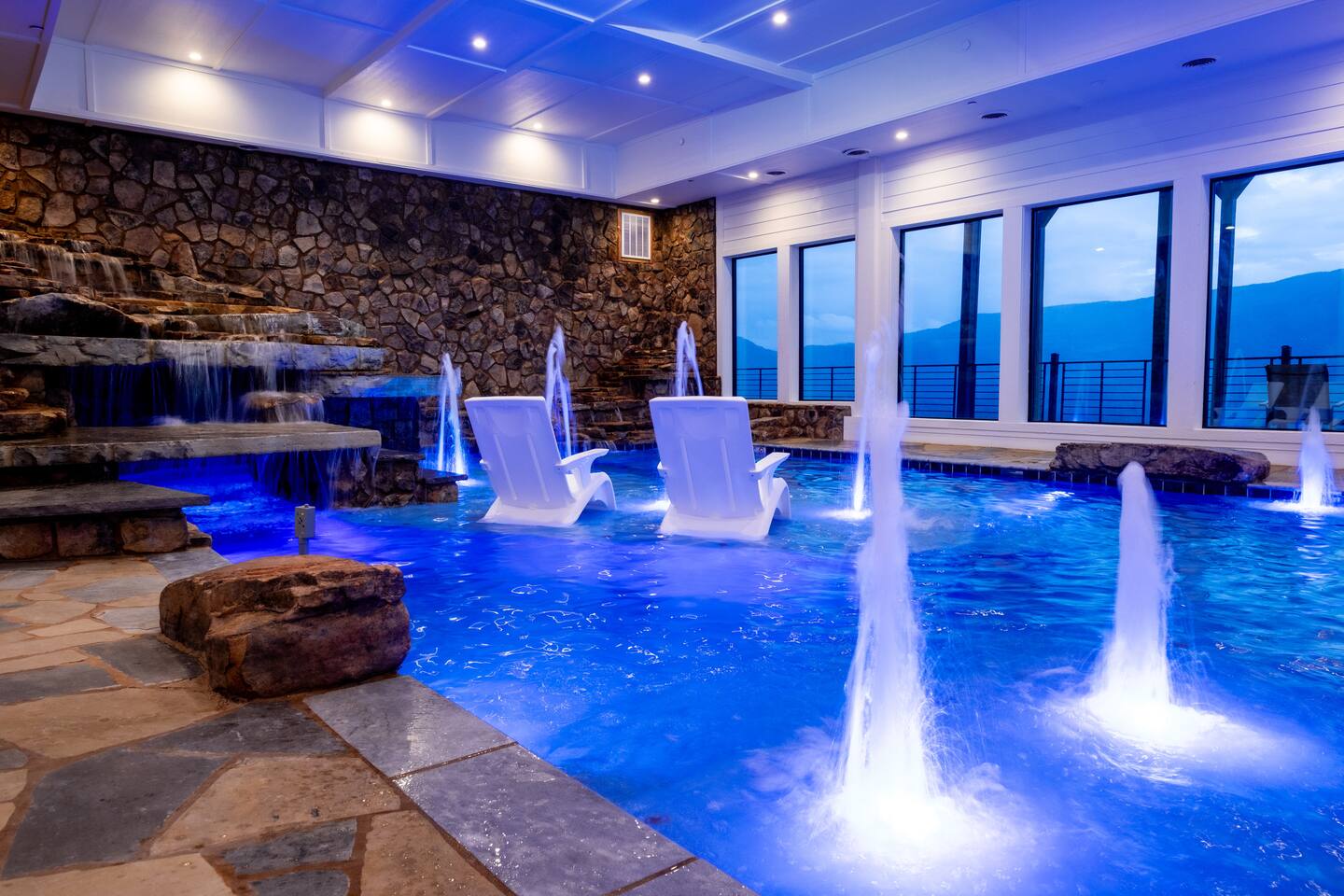 Experience luxury mountain living at Mountain Horizon, a BRAND NEW 7,000 sq ft Smoky Mountain retreat near Pigeon Forge, Gatlinburg, and Great Smoky Mountains National Park. Features 5 king suites, a kid-friendly bunk room, and expansive living spaces with 180° views. Enjoy a private indoor heated pool, hot tub, pickleball, basketball, putt-putt, game loft, and firepit—perfect for family reunions, retreats, and group getaways for all ages.