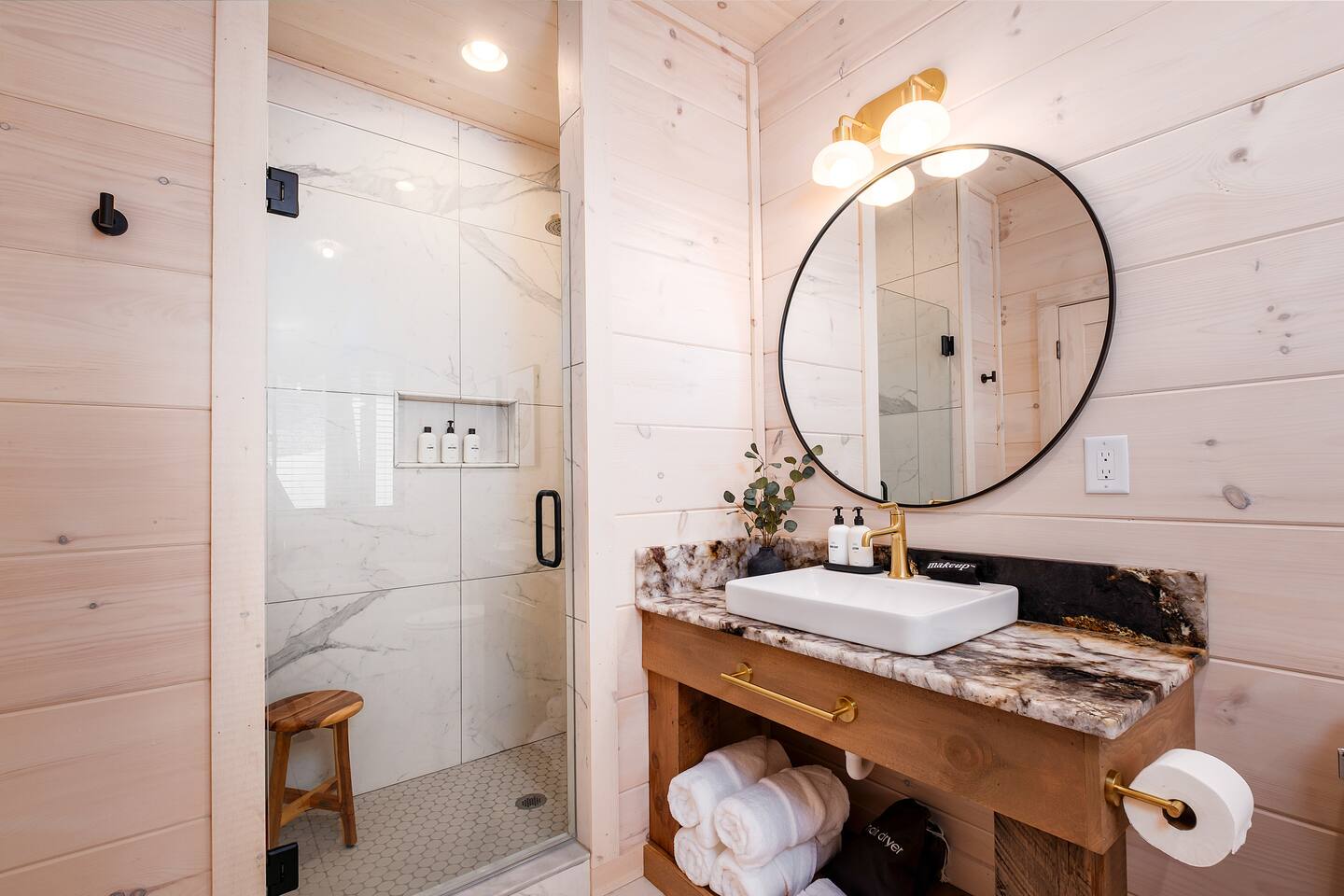 ▪ Max Vehicles: 8 ▪ Accessibility: No-step entry to main level; 3 king suites with ensuite baths on same level ▪ Pool & Hot Tub Safety: Pool room secured with coded lock & door alarm; all pool and hot tub use is strictly at guests’ own risk; children must be supervised at all times ▪ Seasonal Note: Winter/icy conditions may require 4WD; sports court & putt-putt access may be limited in inclement weather ▪ Provided Essentials: Luxury linens, pool towels, starter supply of toiletries & household goods (toilet paper, paper towels, trash bags, dishwasher pods, dish soap, cleaning wipes, laundry detergent, hand soap, lotion, shampoo, conditioner, body wash). Kroger & Publix nearby for restocking.